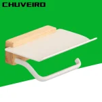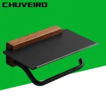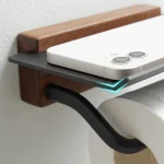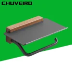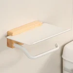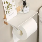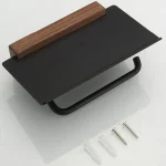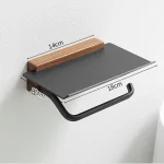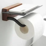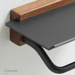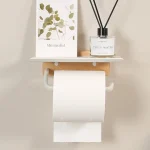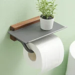 Porte-papier en bois avec étagère en aluminium pour salle de bain.
