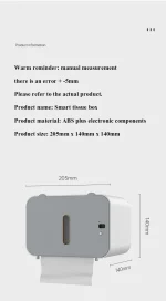 Sortie automatique du papier par induction intelligente, distance d’induction de 10 cm. La main sort automatiquement du papier lorsqu’elle est proche de la zone d’induction.