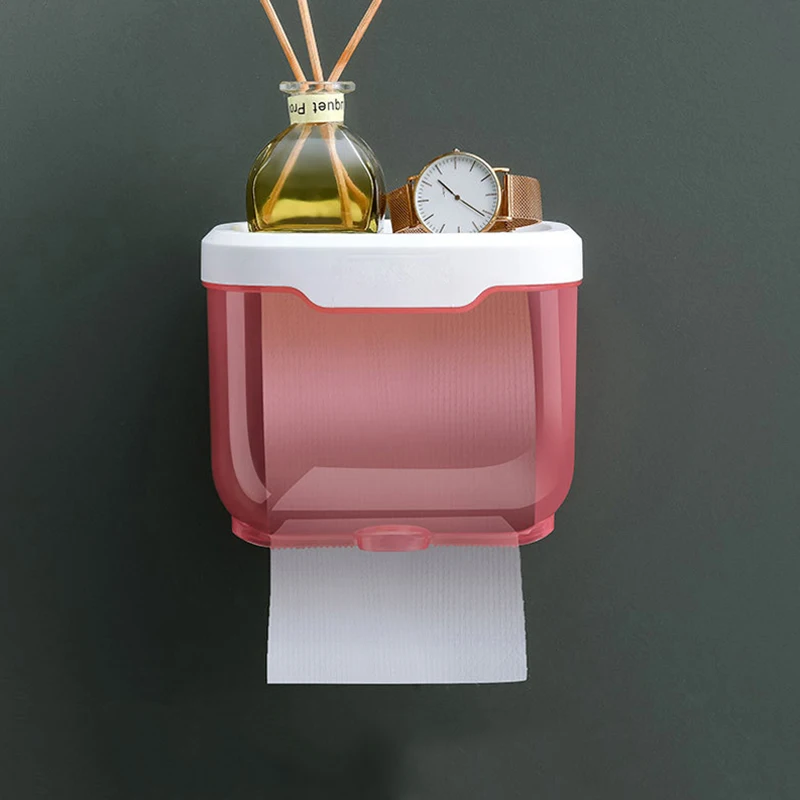 Porte-papier toilette mural étanche, sans perforation, boîte de rangement transparente, fournitures de salle de bain et de cuisine, WWO66