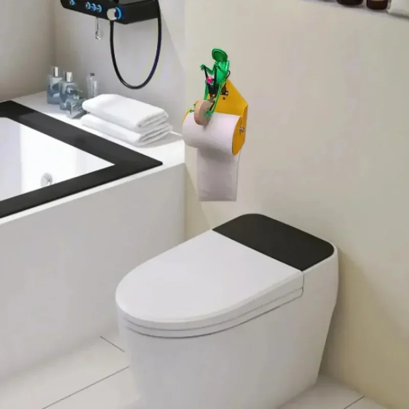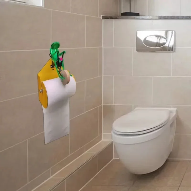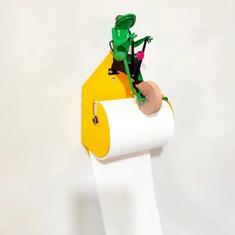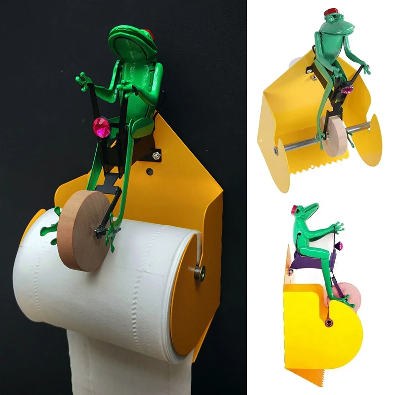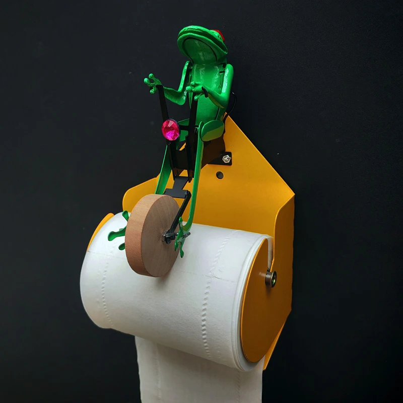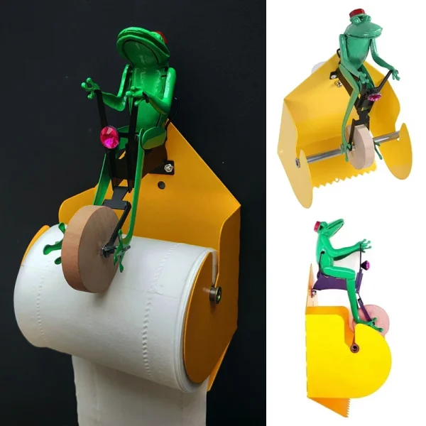 Porte-papier toilette créatif en forme de grenouille à vélo.